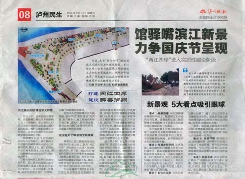 目前,工程改造后的景觀效果突出,有懸挑回廊、瀘州版圖浮雕等多處看點(diǎn),場(chǎng)地空間內(nèi)深厚的意境和文化底蘊(yùn)提升了人們的生活品質(zhì),得到了當(dāng)?shù)厥形⑹姓母叨日J(rèn)可。