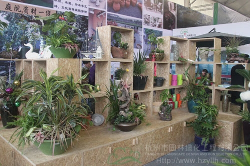 22日上午,浙江(中國)花木城的展廳里人潮涌動(dòng),自然的濕地景觀,古樸的庭院,美輪美奐的花境園,超大的“會(huì)呼吸”的綠墻……風(fēng)格迥異的情景展示讓人目不暇接。而在展區(qū)的西北角,是一個(gè)綜合型展區(qū):一排排透明的玻璃瓶里展示著研發(fā)中心的組培苗;整齊擺放的穴盤里是生產(chǎn)中心的扦插苗;后面的是運(yùn)營中心造型優(yōu)美的組合盆栽、園藝飾品、盆器等;中間的庭院展示區(qū),低矮的墻角花壇里,一蓬紅艷艷的杜鵑,向人們吐露著春的美麗,生動(dòng)的流水點(diǎn)綴一旁,引得大人和孩子爭相上前拍照;最里面一個(gè)木平臺上擺放著一套戶外家居,既是采供中心人員的洽談區(qū),也是景觀的一部分。這,就是杭州市園林綠化工程有限公司的展區(qū)。