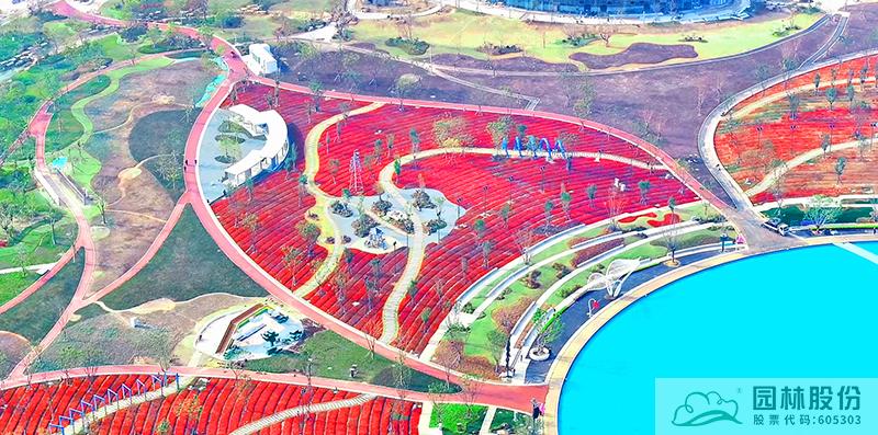 位于項目中心的天空花湖占地面積約27萬平方米,以水環(huán)、外環(huán)及花瓣環(huán)作為構成花海的主要結構體系,溪水環(huán)繞花海外圍形成花溪景觀。水環(huán):即天空之鏡,由一片圓形淺水水面作為花海的核心區(qū)域,天水一色,行人在其上猶如在大型的鏡面游走?;ò戥h(huán):作為花海的主要元素“花瓣”,以有“英雄花”之稱的火星花作為主要片植品種,同時采用多種觀賞性花卉,如紫絨鼠尾草、矮生馬鞭草、郁金香、三角梅、粉黛亂子草等花帶打造充滿活力的花海景觀。外環(huán):圍繞“飄落的花瓣”設計主題甄選花卉品種,采用相同花期的紅粉色為主的多年生花卉片植方式,渲染烘托中心花海的熱烈氣氛,以綠色草坪作為襯托花海的底色,引導游人近距離打卡觀賞。